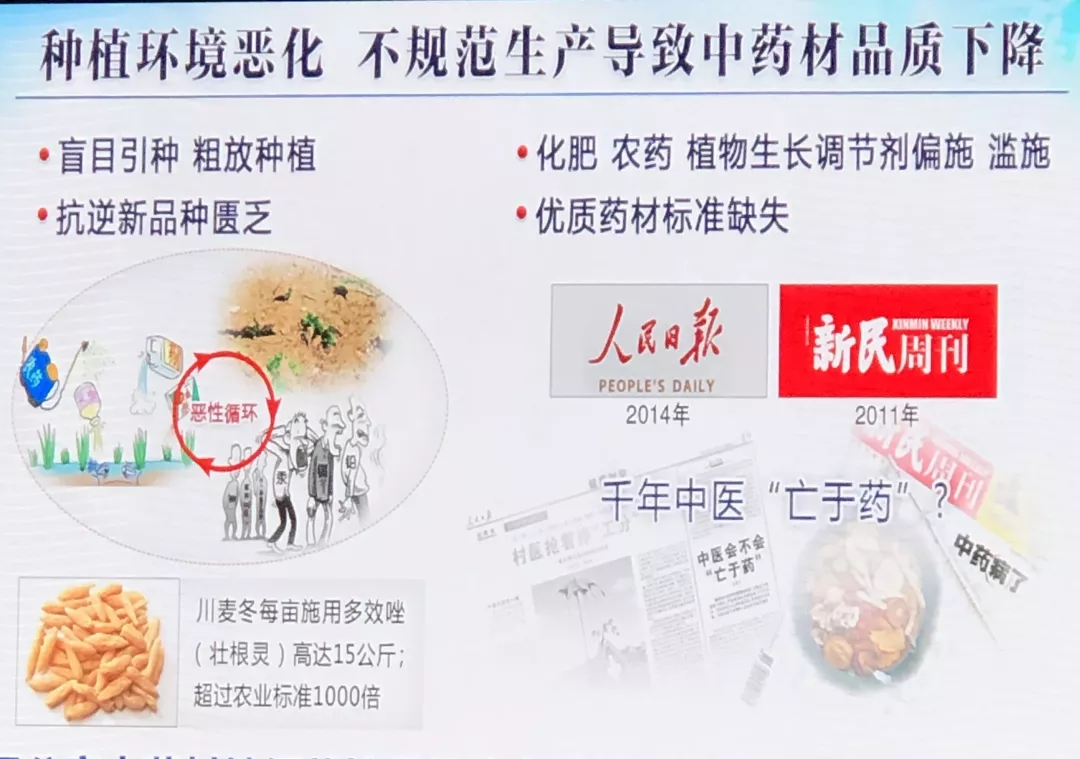 ? ? ? ?會(huì)上強(qiáng)調(diào)因盲目引種、粗放種植,抗逆新品種匱乏,化肥農(nóng)藥濫用等問題,導(dǎo)致現(xiàn)今中藥材品質(zhì)下降,這已成為中藥材行業(yè)面臨的重要問題。