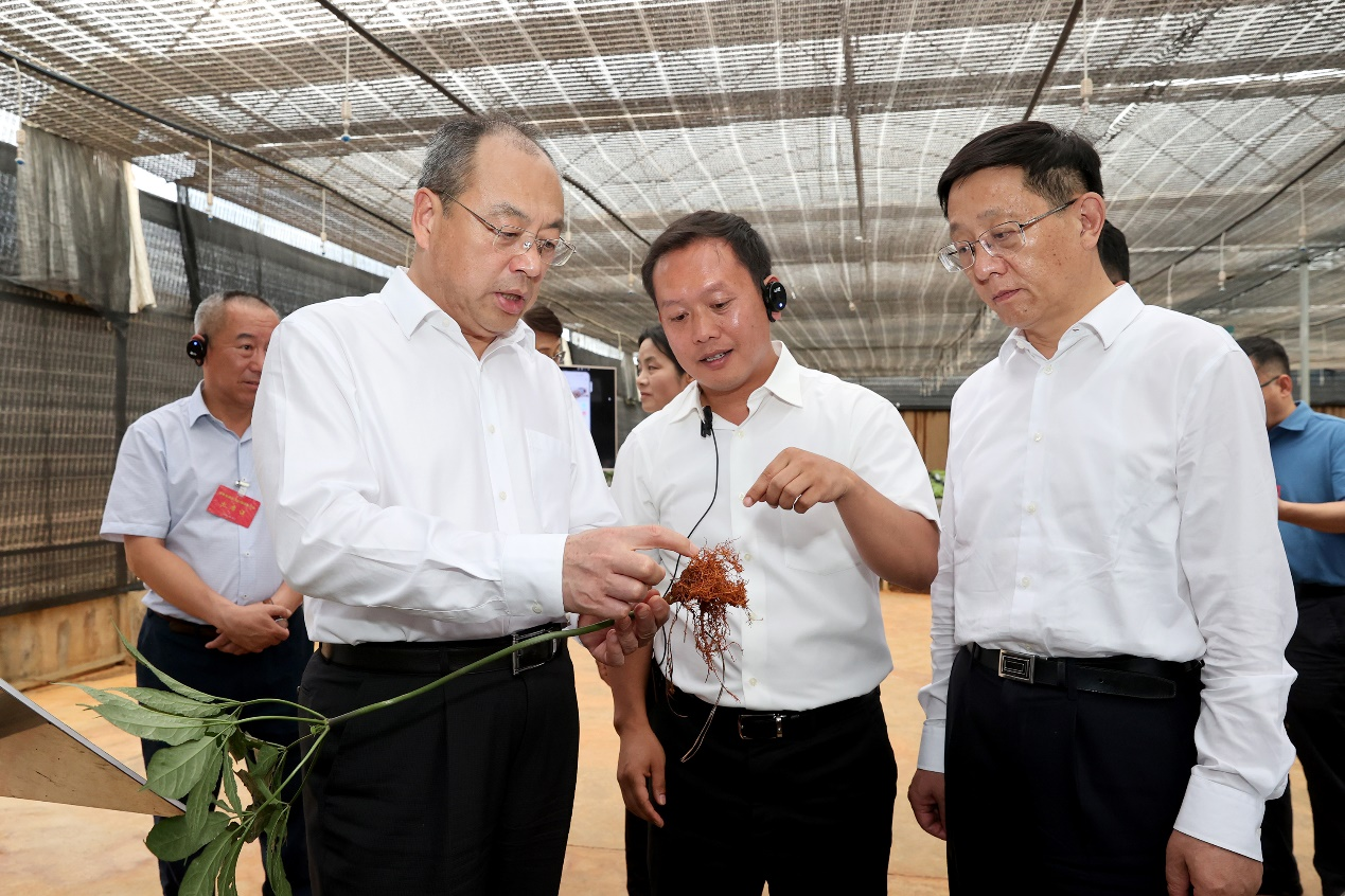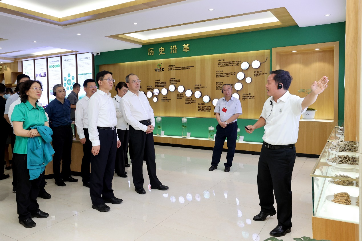 2021年6月3日,云南省委書記阮成發(fā)、省長王予波、省委副書記李小三、省政協(xié)主席李江,省委常委、省人大常委會有關領導、省政府領導班子一行調研苗鄉(xiāng)三七科技園。